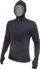 Die Funktionsbekleidung von KWARK zeichnet sich in Materialwahl und Design durch höchste Praxistauglichkeit aus. Eng anliegende Kapuzenjacke von KWARK für den Einsatz unter unwirtlichen Bedingungen bei Sturm und Schnee. Der Hoody läßt sich durch den durchgehenden Reißverschluss optilmal ventilieren. Die Rüpckenpartie ist verlängert, die Arme lassen sich bis zum Fingeransatz herunterziehen, die Daumenschlaufe hält den Ärmel an seiner Position. Die Feuchtigkeit wird von der Faser nicht gespeichert, sondern durch die weiche Innenseite sofort vom Körper weggesaugt und an die nächste Bekleidungsschicht oder die Umgebungsluft abgegeben. Das Gewebe ist antibakteriell, antistatisch und schmutzabweisend ausgerüstet. Eine Geruchsbelästigung wie bei anderen Kunstfasern tritt, wenn überhaupt, so erst wesentlich später auf, die Hautverträglichkeit auch bei Personen mit extrem empfindlicher Haut ist sehr gut. Auf längerer Tour unterwegs gewaschen, trocknet das Material binnen kürzester Zeit. THERMO-PRO - Bekleidung eignet sich somit perfekt für alle Outdoorsportarten, insbesondere Trekking, Klettern, Biken, Gleitschirmfliegen, Wasser- und Skisport.